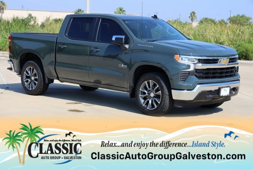 Cypress Gray 2025 Chevrolet Silverado 1500 LT Texas Edition RWD 8-Speed Automatic 3.0L I6 8-Speed Automatic, Black Cloth, 10-Way Power Driver Seat w/Lumbar, 12.3" Multicolor Reconfigurable Digital Display, 120-Volt Bed Mounted Power Outlet, 120-Volt Interior Power Outlet, All-Star Edition, Auto-Locking Rear Differential, Bluetooth® For Phone, Chevytec Spray-On Black Bedliner, Chrome Mirror Caps, Color-Keyed Carpeting Floor Covering, Convenience Package, Convenience Package II, Deep-Tinted Glass, Dual Rear USB Ports (Charge Only), Dual-Zone Automatic Climate Control, Electric Rear-Window Defogger, Electronic Cruise Control, EZ Lift Power Lock & Release Tailgate, Front Rubberized Vinyl Floor Mats, HD Rear Vision Camera, Heated Driver & Front Outboard Passenger Seats, Heated Power-Adjustable Outside Mirrors, Heated Steering Wheel, High Capacity Suspension Package, Hitch Guidance, Hitch Guidance w/Hitch View, In-Vehicle Trailering System App, Inside Rear-View Mirror w/Tilt, Integrated Trailer Brake Controller, Keyless Open & Start, LED Cargo Area Lighting, Manual Tilt/Telescoping Steering Column, OnStar Services Capable, Power Front Windows w/Driver Express Up/Down, Power Front Windows w/Passenger Express Down, Power Rear Windows w/Express Down, Power Sliding Rear Window w/Rear Defogger, Preferred Equipment Group 1LT, Protection Package, Rear 60/40 Folding Bench Seat (Folds Up), Rear Rubberized-Vinyl Floor Mats, Rear Wheelhouse Liners, Remote Start Package, Remote Vehicle Starter System, SiriusXM w/360L Trial Subscription, Standard Tailgate, Steering Wheel Audio Controls, Teen Driver, Texas Edition Badging, Texas Edition Plus, Theft Deterrent System (Unauthorized Entry), Tire Pressure Monitoring System, Trailering Package, Universal Home Remote, Wheels: 20" x 9" Painted Aluminum, Wi-Fi Hot Spot Capable, Wrapped Steering Wheel.