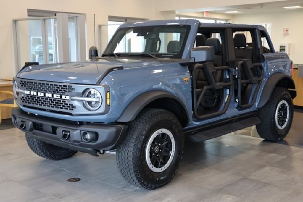 Azure / Gray 2025 Ford Bronco Badlands 4WD 7-Speed Manual 2.7L EcoBoost V6 Bronco Badlands, 4D Sport Utility, 2.7L EcoBoost V6, 7-Speed Manual, 4WD, Azure / Gray, Vinyl.