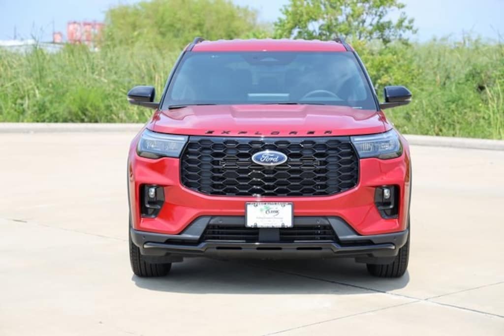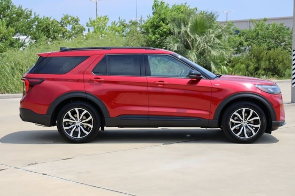 Rapid Red Metallic Tinted Clearcoat 2025 Ford Explorer ST-Line RWD 10-Speed Automatic 2.3L EcoBoost I-4 Explorer ST-Line, 4D Sport Utility, 2.3L EcoBoost I-4, 10-Speed Automatic, RWD, Rapid Red Metallic Tinted Clearcoat, Cloth.