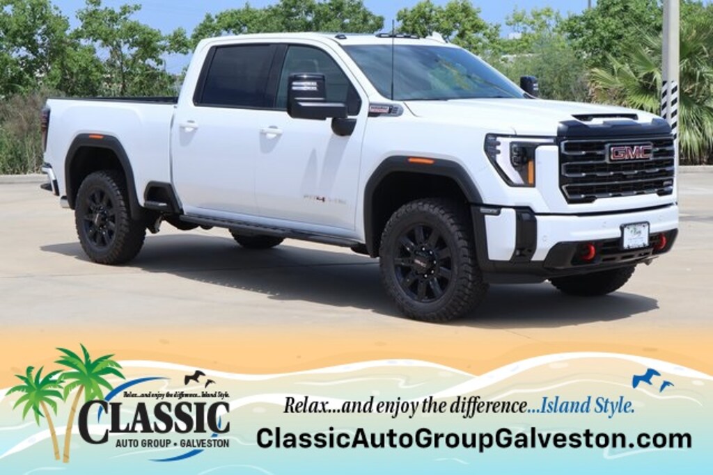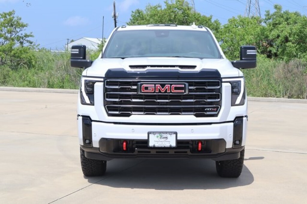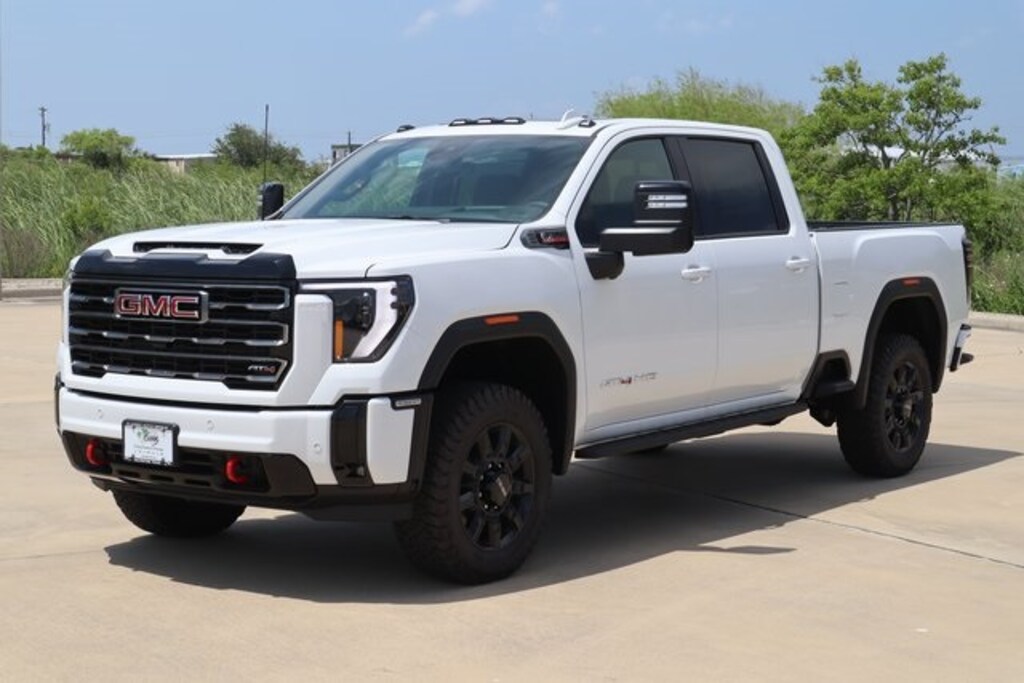 Summit White 2025 GMC Sierra 2500HD AT4 4WD 10-Speed Automatic Duramax 6.6L V8 Turbodiesel Sierra 2500HD AAT4, 4D Crew Cab, Duramax 6.6L V8 Turbodiesel, 10-Speed Automatic, 4WD, Summit White, Jet Black With Kalahari Accents Leather. Price includes: $1000 - Buick & GMC Consumer Cash Program. Exp. 11/03/2025