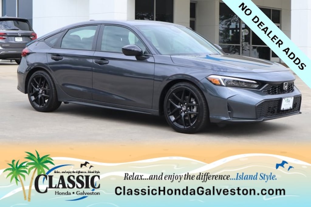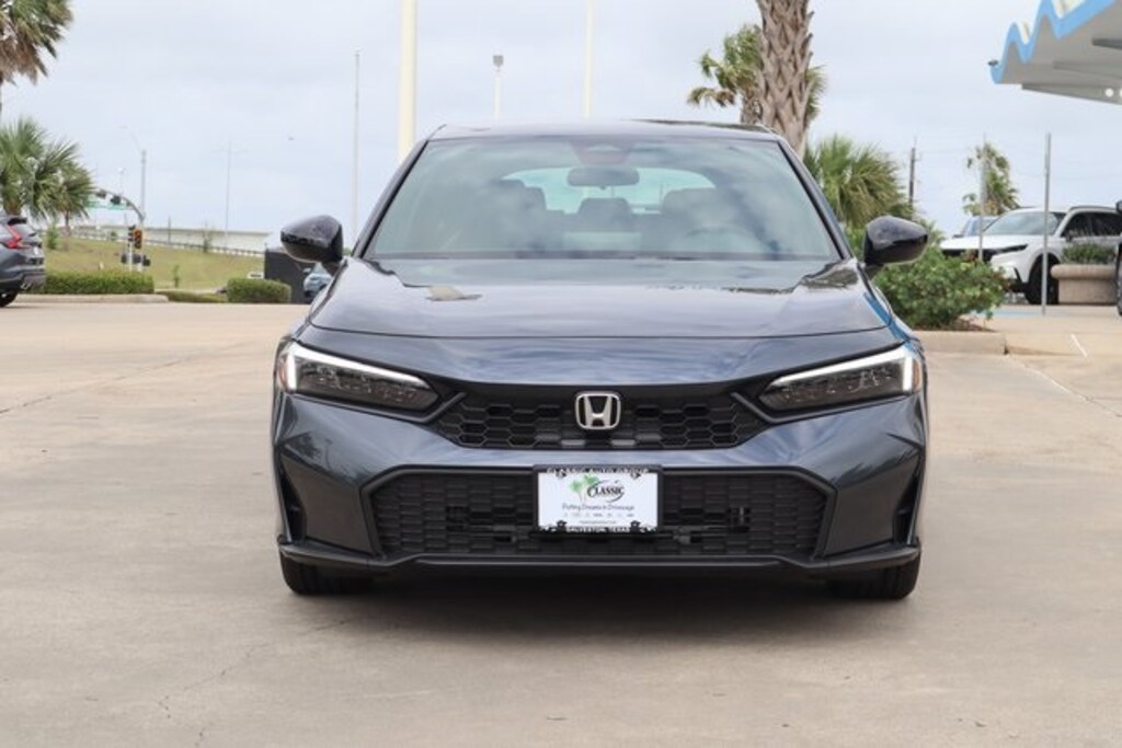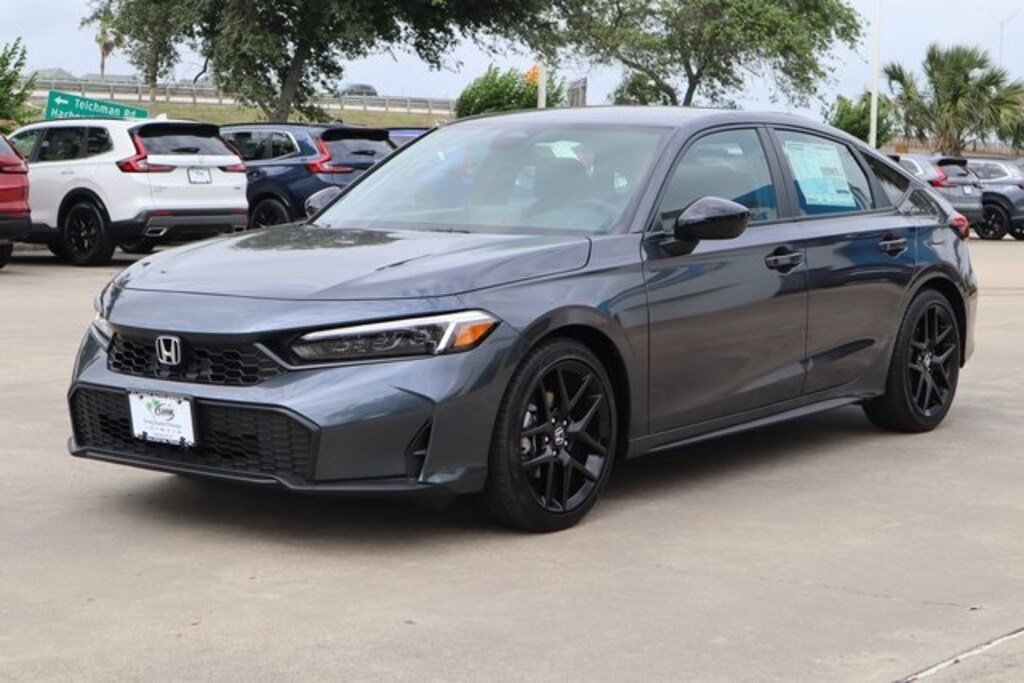 Meteorite Gray Metallic 2025 Honda Civic Sport FWD CVT 2.0L I4 DOHC 16V 4-Wheel Disc Brakes, 8 Speakers, ABS brakes, Adaptive Cruise Control: Adaptive Cruise Control (ACC) with Low-Speed Follow, Air Conditioning, Alloy wheels, AM/FM radio, Apple CarPlay/Android Auto, Auto High-beam Headlights, Automatic temperature control, Blind Spot Information (BSI) System warning, Brake assist, Delay-off headlights, Electronic Stability Control, Emergency communication system: HondaLink, Exterior Parking Camera Rear, Four wheel independent suspension, Front anti-roll bar, Front Bucket Seats, Fully automatic headlights, Heated door mirrors, Illuminated entry, Lane departure: Lane Keeping Assist System (LKAS) active, Leather Shift Knob, Outside temperature display, Panic alarm, Power door mirrors, Power steering, Power windows, Radio: 180-Watt Audio System, Rear anti-roll bar, Rear window defroster, Rear window wiper, Remote keyless entry, Security system, Speed control, Speed-sensing steering, Split folding rear seat, Steering wheel mounted audio controls, Tachometer, Telescoping steering wheel, Tilt steering wheel, Traction control, Trip computer, Wheels: 18" Gloss Black Alloy.