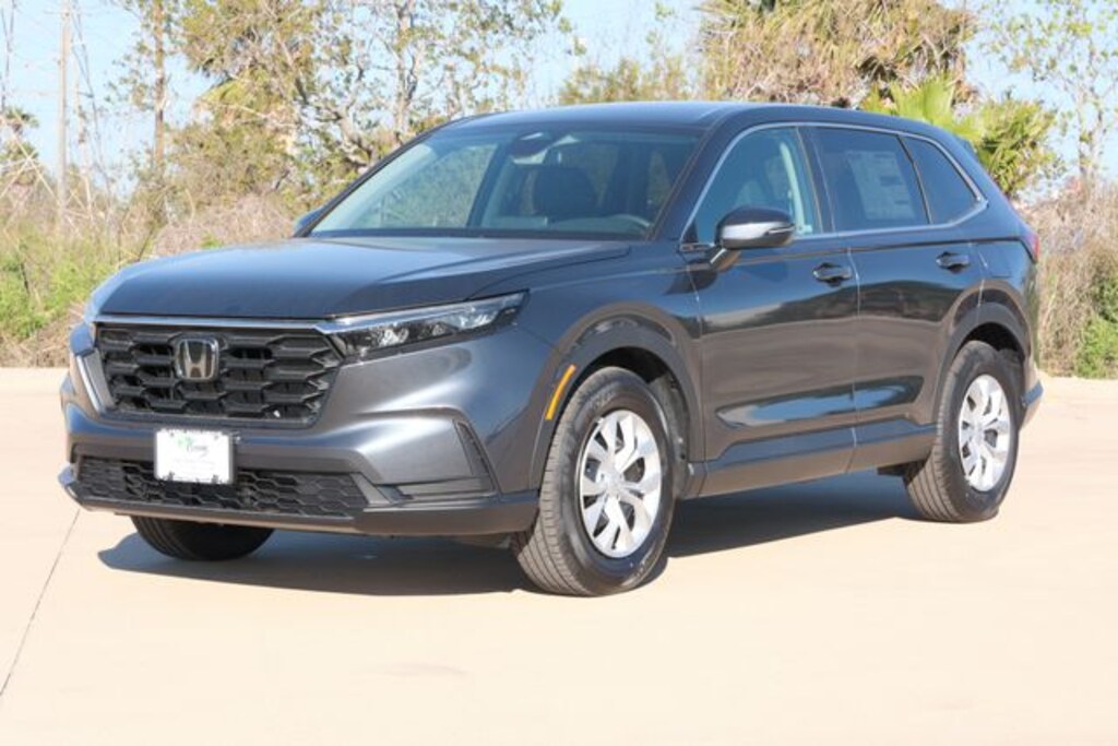 Meteorite Gray Metallic 2026 Honda CR-V LX FWD CVT 1.5L I4 DOHC 16V 4 Speakers, 4-Wheel Disc Brakes, ABS brakes, Adaptive Cruise Control: Adaptive Cruise Control (ACC) with Low-Speed Follow, Air Conditioning, AM/FM radio, Apple CarPlay/Android Auto, Auto High-beam Headlights, Automatic temperature control, Brake assist, Cloth Seat Trim, Compass, Delay-off headlights, Electronic Stability Control, Exterior Parking Camera Rear, Four wheel independent suspension, Front anti-roll bar, Front Bucket Seats, Fully automatic headlights, Illuminated entry, Low tire pressure warning, Outside temperature display, Panic alarm, Power door mirrors, Power steering, Power windows, Radio data system, Radio: 160-Watt AM/FM Audio System, Rear anti-roll bar, Rear side impact airbag, Rear window defroster, Rear window wiper, Remote keyless entry, Security system, Speed control, Speed-sensing steering, Speed-Sensitive Wipers, Split folding rear seat, Spoiler, Steering wheel mounted audio controls, Tachometer, Telescoping steering wheel, Tilt steering wheel, Traction control, Trip computer, Turn signal indicator mirrors, Variably intermittent wipers, Wheels: 17" Steel with Covers.