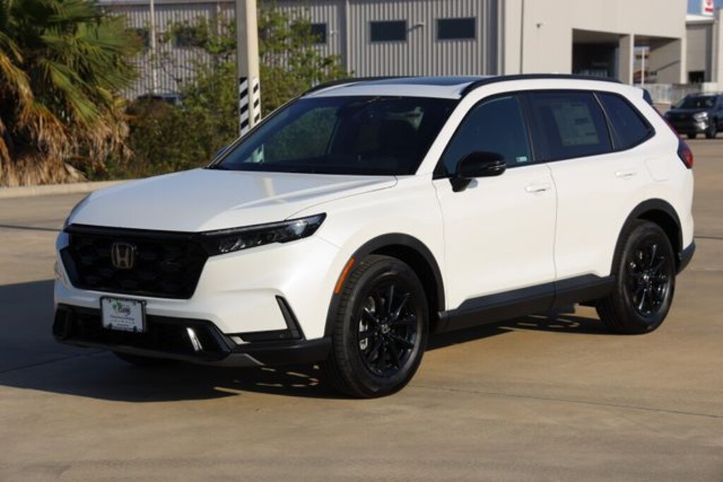 Platinum White Pearl 2026 Honda CR-V Hybrid Sport-L FWD eCVT 2.0L I4 DOHC 16V 2.0L I4 DOHC 16V, 4-Wheel Disc Brakes, 8 Speakers, ABS brakes, Active Cruise Control, Adaptive Cruise Control: Adaptive Cruise Control (ACC) with Low-Speed Follow, Air Conditioning, Alloy wheels, AM/FM radio, Apple CarPlay/Android Auto, Auto High-beam Headlights, Automatic temperature control, Blind Spot Information (BSI) System warning, Brake assist, Compass, Delay-off headlights, Electronic Stability Control, Exterior Parking Camera Rear, Four wheel independent suspension, Front anti-roll bar, Front Bucket Seats, Front dual zone A/C, Fully automatic headlights, Heated door mirrors, Heated Front Bucket Seats, Heated front seats, Illuminated entry, Leather Seat Trim, Leather Shift Knob, Leather steering wheel, Low tire pressure warning, Memory seat, Outside temperature display, Panic alarm, Power door mirrors, Power driver seat, Power Liftgate, Power moonroof, Power passenger seat, Power steering, Power windows, Radio data system, Radio: 320-Watt AM/FM Audio System, Rear anti-roll bar, Rear window defroster, Rear window wiper, Remote keyless entry, Security system, Speed control, Speed-sensing steering, Speed-Sensitive Wipers, Split folding rear seat, Spoiler, Steering wheel mounted audio controls, Telescoping steering wheel, Tilt steering wheel, Traction control, Trip computer, Turn signal indicator mirrors, Variably intermittent wipers, Wheels: 18" Berlina Black.