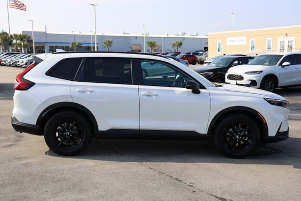 White 2026 Honda CR-V Hybrid Sport-L FWD eCVT 2.0L I4 DOHC 16V 4-Wheel Disc Brakes, 8 Speakers, ABS brakes, Adaptive Cruise Control: Adaptive Cruise Control (ACC) with Low-Speed Follow, Air Conditioning, Alloy wheels, Apple CarPlay/Android Auto, Auto High-beam Headlights, Automatic temperature control, Blind Spot Information (BSI) System warning, Brake assist, Compass, Delay-off headlights, Electronic Stability Control, Exterior Parking Camera Rear, Four wheel independent suspension, Front anti-roll bar, Front Bucket Seats, Front dual zone A/C, Fully automatic headlights, Heated door mirrors, Heated Front Bucket Seats, Heated front seats, Illuminated entry, Leather Seat Trim, Leather Shift Knob, Leather steering wheel, Low tire pressure warning, Memory seat, Outside temperature display, Panic alarm, Power door mirrors, Power driver seat, Power Liftgate, Power moonroof, Power passenger seat, Power steering, Power windows, Radio data system, Radio: 320-Watt AM/FM Audio System, Rear anti-roll bar, Rear window defroster, Rear window wiper, Remote keyless entry, Security system, Speed control, Speed-sensing steering, Speed-Sensitive Wipers, Split folding rear seat, Spoiler, Steering wheel mounted audio controls, Telescoping steering wheel, Tilt steering wheel, Traction control, Trip computer, Turn signal indicator mirrors, Variably intermittent wipers, Wheels: 18" Berlina Black.