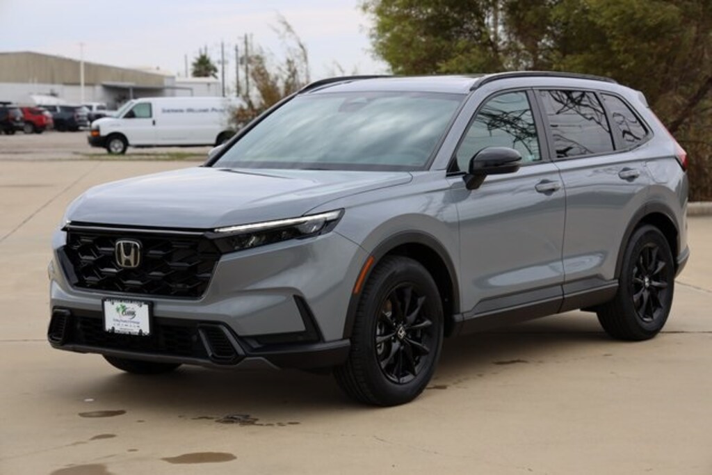 Gray 2026 Honda CR-V Hybrid Sport-L FWD eCVT 2.0L I4 DOHC 16V 4-Wheel Disc Brakes, 8 Speakers, ABS brakes, Adaptive Cruise Control: Adaptive Cruise Control (ACC) with Low-Speed Follow, Air Conditioning, Alloy wheels, Apple CarPlay/Android Auto, Auto High-beam Headlights, Auto-dimming Rear-View mirror, Automatic temperature control, Blind Spot Information (BSI) System warning, Brake assist, Compass, Delay-off headlights, Electronic Stability Control, Exterior Parking Camera Rear, Four wheel independent suspension, Front anti-roll bar, Front Bucket Seats, Front dual zone A/C, Fully automatic headlights, Heated door mirrors, Heated Front Bucket Seats, Heated front seats, Illuminated entry, Leather Seat Trim, Leather Shift Knob, Leather steering wheel, Low tire pressure warning, Memory seat, Outside temperature display, Panic alarm, Power door mirrors, Power driver seat, Power Liftgate, Power moonroof, Power passenger seat, Power steering, Power windows, Radio data system, Radio: 320-Watt AM/FM Audio System, Rear anti-roll bar, Rear window defroster, Rear window wiper, Remote keyless entry, Security system, Speed control, Speed-sensing steering, Speed-Sensitive Wipers, Split folding rear seat, Spoiler, Steering wheel mounted audio controls, Telescoping steering wheel, Tilt steering wheel, Traction control, Trip computer, Turn signal indicator mirrors, Variably intermittent wipers, Wheels: 18" Berlina Black.