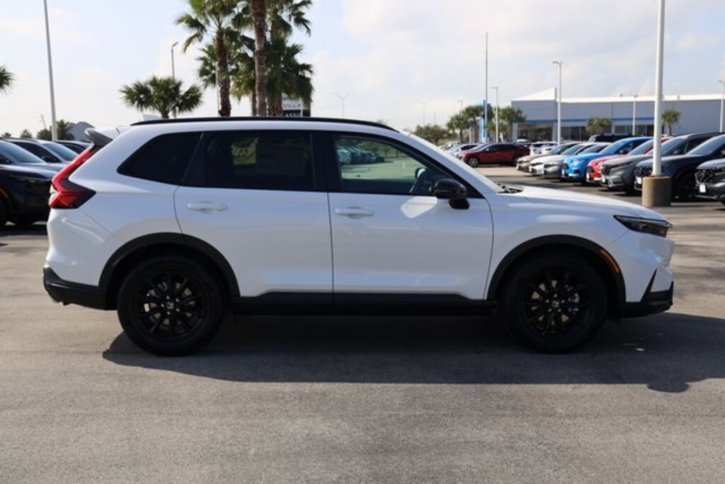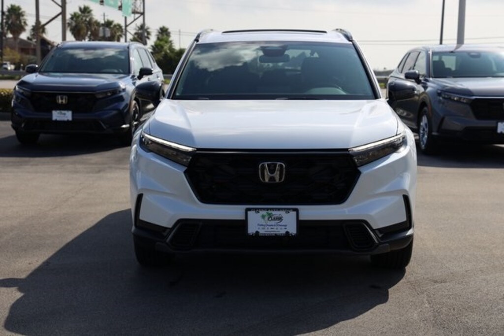 White 2026 Honda CR-V Hybrid Sport FWD eCVT 2.0L I4 DOHC 16V 4-Wheel Disc Brakes, 9 Speakers, ABS brakes, Adaptive Cruise Control: Adaptive Cruise Control (ACC) with Low-Speed Follow, Air Conditioning, Alloy wheels, Apple CarPlay/Android Auto, Auto High-beam Headlights, Automatic temperature control, Blind Spot Information (BSI) System warning, Brake assist, Cloth Seat Trim, Compass, Delay-off headlights, Electronic Stability Control, Exterior Parking Camera Rear, Four wheel independent suspension, Front anti-roll bar, Front Bucket Seats, Front dual zone A/C, Fully automatic headlights, Heated door mirrors, Heated Front Bucket Seats, Heated front seats, Illuminated entry, Leather Shift Knob, Leather steering wheel, Low tire pressure warning, Outside temperature display, Panic alarm, Power door mirrors, Power driver seat, Power moonroof, Power steering, Power windows, Radio data system, Radio: 240-Watt AM/FM Audio System, Rear anti-roll bar, Rear window defroster, Rear window wiper, Remote keyless entry, Security system, Speed control, Speed-sensing steering, Speed-Sensitive Wipers, Split folding rear seat, Spoiler, Steering wheel mounted audio controls, Telescoping steering wheel, Tilt steering wheel, Traction control, Trip computer, Turn signal indicator mirrors, Variably intermittent wipers, Wheels: 18" Berlina Black.