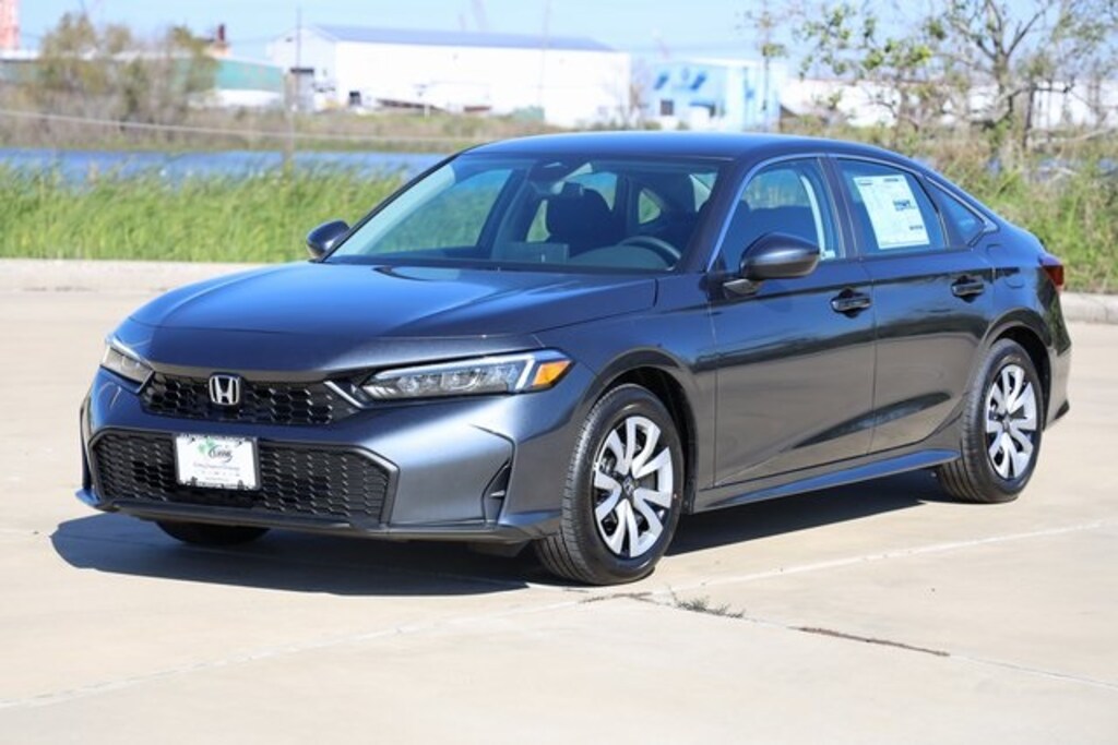 Meteorite Gray Metallic 2026 Honda Civic LX FWD CVT 2.0L I4 DOHC 16V Black Cloth, 16" Wheels w/Full Covers, 4 Speakers, 4-Wheel Disc Brakes, ABS brakes, Active Cruise Control, Adaptive Cruise Control: Adaptive Cruise Control (ACC) with Low-Speed Follow, Air Conditioning, AM/FM radio, Apple CarPlay/Android Auto, Auto High-beam Headlights, Automatic temperature control, Brake assist, Cloth Seating Surfaces, Delay-off headlights, Electronic Stability Control, Emergency communication system: HondaLink, Exterior Parking Camera Rear, Four wheel independent suspension, Front anti-roll bar, Front Bucket Seats, Fully automatic headlights, Illuminated entry, Low tire pressure warning, Outside temperature display, Panic alarm, Power door mirrors, Power steering, Power windows, Radio data system, Radio: 160-Watt Audio System, Rear anti-roll bar, Rear window defroster, Remote keyless entry, Security system, Speed control, Speed-sensing steering, Steering wheel mounted audio controls, Tachometer, Telescoping steering wheel, Tilt steering wheel, Traction control, Trip computer.