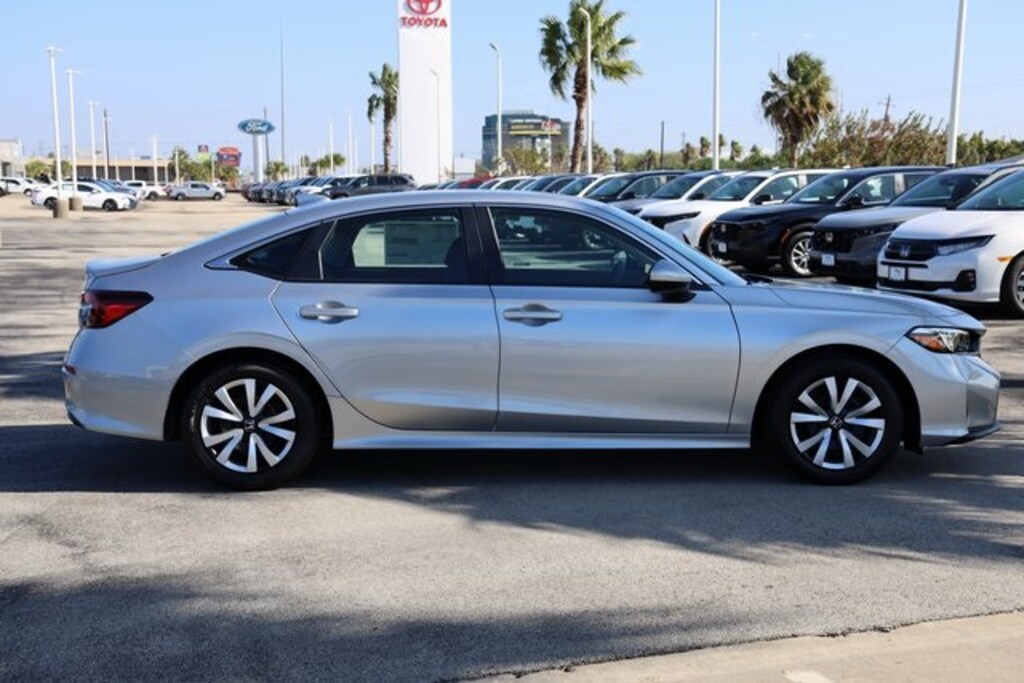 Solar Silver Metallic 2026 Honda Civic LX FWD CVT 2.0L I4 DOHC 16V 16" Wheels w/Full Covers, 4 Speakers, 4-Wheel Disc Brakes, ABS brakes, Active Cruise Control, Adaptive Cruise Control: Adaptive Cruise Control (ACC) with Low-Speed Follow, Air Conditioning, AM/FM radio, Apple CarPlay/Android Auto, Auto High-beam Headlights, Automatic temperature control, Brake assist, Cloth Seating Surfaces, Delay-off headlights, Driver door bin, Driver vanity mirror, Electronic Stability Control, Emergency communication system: HondaLink, Exterior Parking Camera Rear, Four wheel independent suspension, Front anti-roll bar, Front Bucket Seats, Front Center Armrest, Front reading lights, Fully automatic headlights, Illuminated entry, Low tire pressure warning, Outside temperature display, Panic alarm, Power door mirrors, Power steering, Power windows, Radio data system, Radio: 160-Watt Audio System, Rear anti-roll bar, Rear window defroster, Remote keyless entry, Security system, Speed control, Speed-sensing steering, Steering wheel mounted audio controls, Tachometer, Telescoping steering wheel, Tilt steering wheel, Traction control, Trip computer.