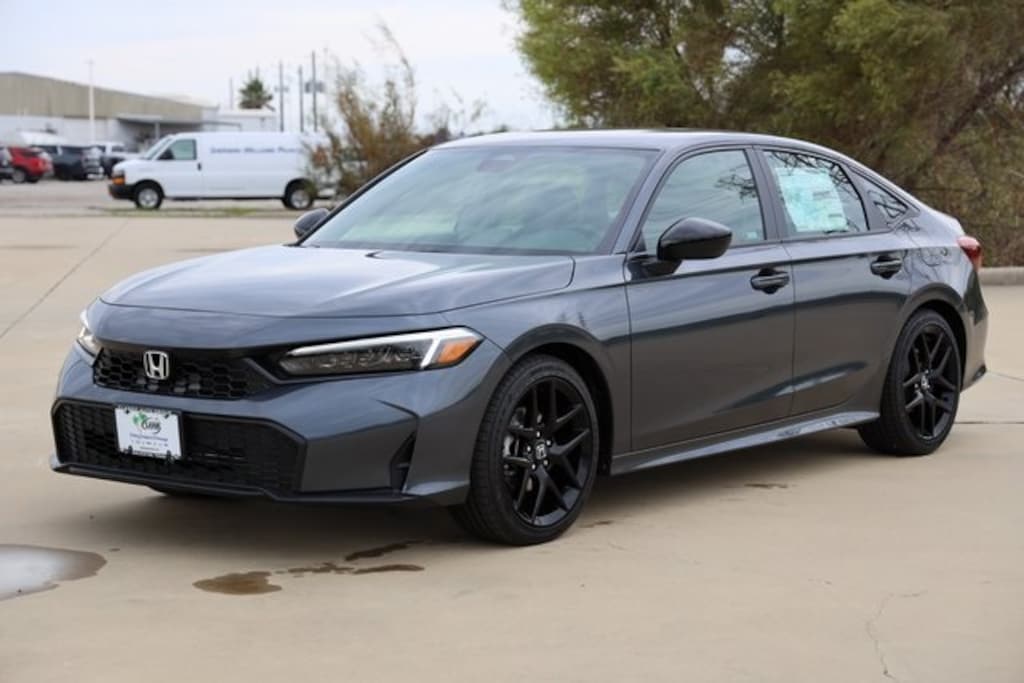 Meteorite Gray Metallic 2026 Honda Civic Sport FWD CVT 2.0L I4 DOHC 16V 4-Wheel Disc Brakes, 8 Speakers, ABS brakes, Active Cruise Control, Adaptive Cruise Control: Adaptive Cruise Control (ACC) with Low-Speed Follow, Air Conditioning, Alloy wheels, AM/FM radio, Apple CarPlay/Android Auto, Auto High-beam Headlights, Automatic temperature control, Blind Spot Information (BSI) System warning, Brake assist, Cloth/Leatherette Seating Surfaces, Delay-off headlights, Electronic Stability Control, Emergency communication system: HondaLink, Exterior Parking Camera Rear, Four wheel independent suspension, Front anti-roll bar, Front Bucket Seats, Front Center Armrest, Fully automatic headlights, Heated door mirrors, Illuminated entry, Leather Shift Knob, Leather steering wheel, Low tire pressure warning, Outside temperature display, Panic alarm, Power door mirrors, Power steering, Power windows, Radio data system, Radio: 180-Watt Audio System, Rear anti-roll bar, Rear window defroster, Remote keyless entry, Security system, Speed control, Speed-sensing steering, Split folding rear seat, Steering wheel mounted audio controls, Tachometer, Telescoping steering wheel, Tilt steering wheel, Traction control, Trip computer, Wheels: 18" Gloss Black Alloy.