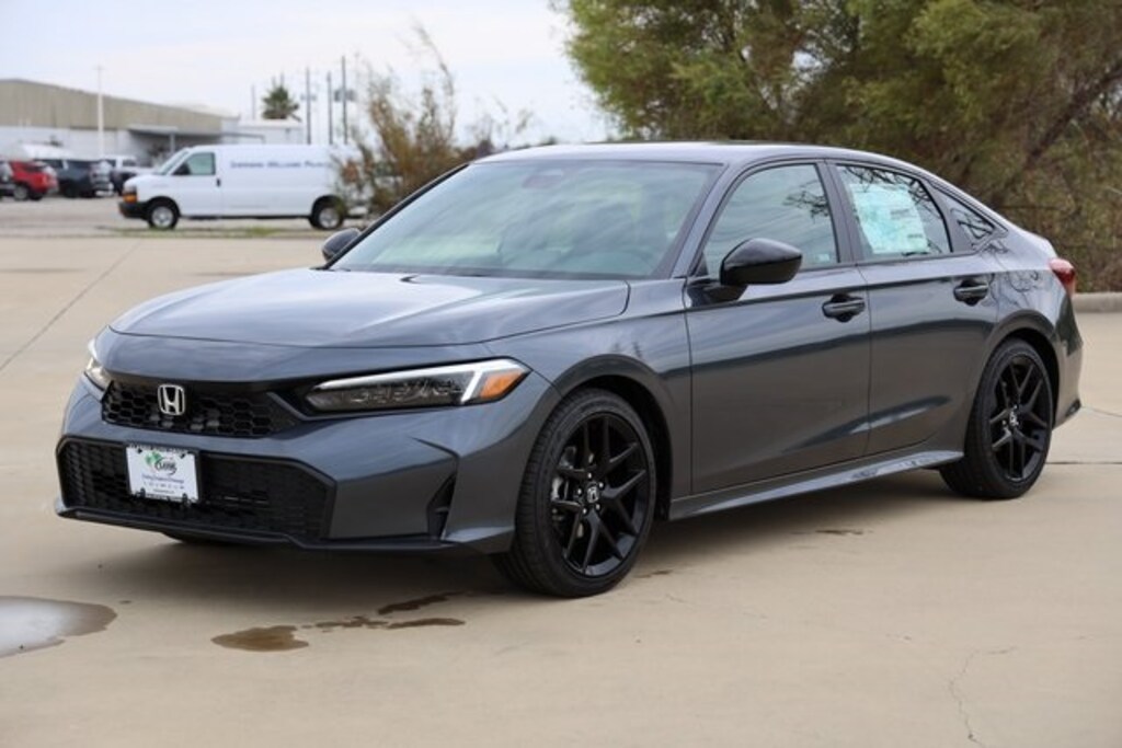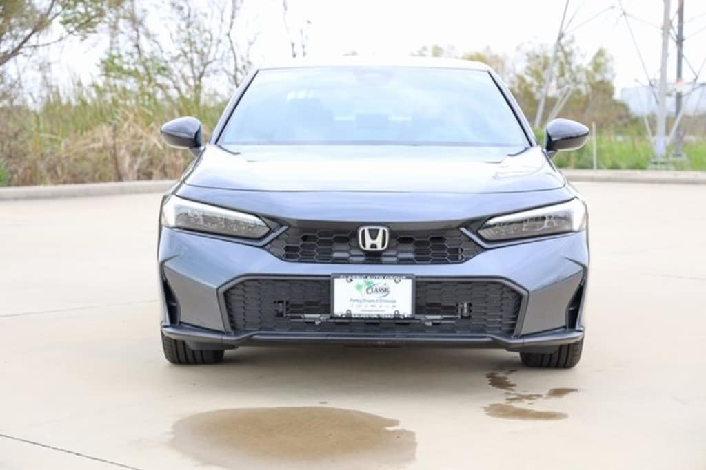 Meteorite Gray Metallic 2026 Honda Civic Sport FWD CVT 2.0L I4 DOHC 16V 4-Wheel Disc Brakes, 8 Speakers, ABS brakes, Active Cruise Control, Adaptive Cruise Control: Adaptive Cruise Control (ACC) with Low-Speed Follow, Air Conditioning, Alloy wheels, AM/FM radio, Apple CarPlay/Android Auto, Auto High-beam Headlights, Automatic temperature control, Blind Spot Information (BSI) System warning, Brake assist, Cloth/Leatherette Seating Surfaces, Delay-off headlights, Electronic Stability Control, Emergency communication system: HondaLink, Exterior Parking Camera Rear, Four wheel independent suspension, Front anti-roll bar, Front Bucket Seats, Front Center Armrest, Fully automatic headlights, Heated door mirrors, Illuminated entry, Leather Shift Knob, Leather steering wheel, Low tire pressure warning, Outside temperature display, Panic alarm, Power door mirrors, Power steering, Power windows, Radio data system, Radio: 180-Watt Audio System, Rear anti-roll bar, Rear window defroster, Remote keyless entry, Security system, Speed control, Speed-sensing steering, Split folding rear seat, Steering wheel mounted audio controls, Tachometer, Telescoping steering wheel, Tilt steering wheel, Traction control, Trip computer, Wheels: 18" Gloss Black Alloy.