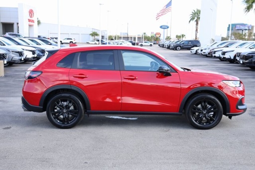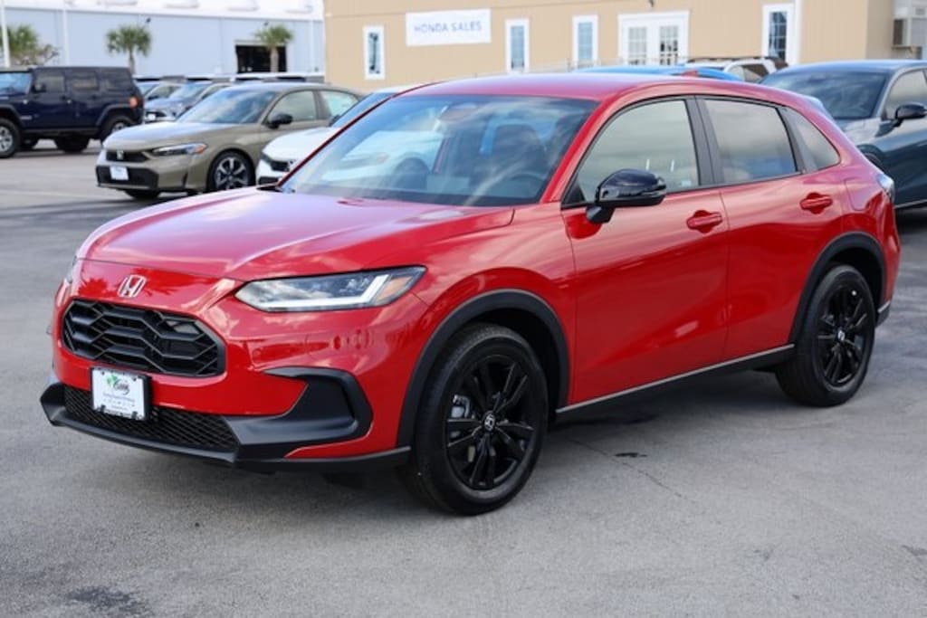 Milano Red 2026 Honda HR-V Sport FWD CVT 2.0L I4 DOHC 16V i-VTEC 4-Wheel Disc Brakes, 9 Speakers, ABS brakes, Active Cruise Control, Adaptive Cruise Control: Adaptive Cruise Control (ACC) with Low-Speed Follow, Air Conditioning, Alloy wheels, AM/FM radio, Apple CarPlay/Android Auto, Auto High-beam Headlights, Automatic temperature control, Blind Spot Information (BSI) System warning, Brake assist, Cloth Seat Trim, Compass, Delay-off headlights, Electronic Stability Control, Exterior Parking Camera Rear, Four wheel independent suspension, Front anti-roll bar, Front Bucket Seats, Fully automatic headlights, Heated door mirrors, Heated Front Bucket Seats, Heated front seats, Illuminated entry, Low tire pressure warning, Outside temperature display, Panic alarm, Power door mirrors, Power steering, Power windows, Radio data system, Radio: 180-Watt Audio System w/6 Speakers, Rear anti-roll bar, Rear window defroster, Rear window wiper, Remote keyless entry, Security system, Speed control, Speed-sensing steering, Split folding rear seat, Spoiler, Steering wheel mounted audio controls, Tachometer, Telescoping steering wheel, Tilt steering wheel, Traction control, Trip computer, Turn signal indicator mirrors, Variably intermittent wipers, Wheels: 18" Gloss Black Alloy.