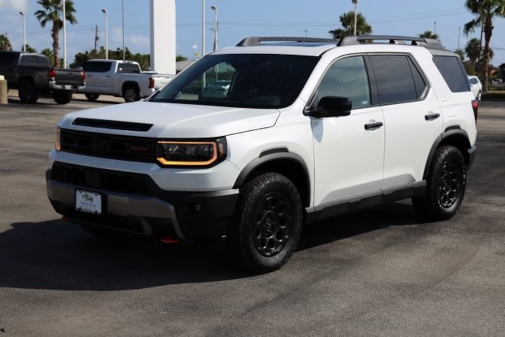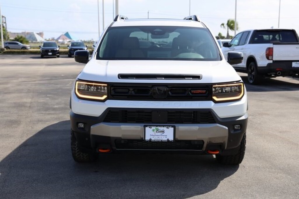 Platinum White Pearl 2026 Honda Passport TrailSport Elite AWD 10-Speed Automatic 3.5L V6 DOHC 24V 12 Speakers, 4-Wheel Disc Brakes, ABS brakes, Adaptive Cruise Control: Adaptive Cruise Control (ACC) with Low-Speed Follow, Air Conditioning, Alloy wheels, Apple CarPlay/Android Auto, Auto High-beam Headlights, Auto-dimming Rear-View mirror, Automatic temperature control, Blind Spot Information (BSI) System warning, Brake assist, Compass, Delay-off headlights, Electronic Stability Control, Emergency communication system: HondaLink, Exterior Parking Camera Rear, Four wheel independent suspension, Front anti-roll bar, Front Bucket Seats, Front dual zone A/C, Front fog lights, Fully automatic headlights, Heated & Ventilated Front Bucket Seats, Heated door mirrors, Heated front seats, Heated rear seats, Heated steering wheel, HVAC memory, Illuminated entry, Lane departure: Lane Keeping Assist System (LKAS) active, Leather steering wheel, Low tire pressure warning, Memory seat, Navigation system: Google Maps, Outside temperature display, Panic alarm, Perforated Leather Seat Trim, Power door mirrors, Power driver seat, Power Liftgate, Power moonroof, Power passenger seat, Power steering, Power windows, Radio data system, Radio: Bose Premium Sound System w/12 Speakers, Rain sensing wipers, Rear air conditioning, Rear anti-roll bar, Rear window defroster, Rear window wiper, Remote keyless entry, Security system, Speed control, Speed-sensing steering, Split folding rear seat, Spoiler, Steering wheel mounted audio controls, Tachometer, Telescoping steering wheel, Tilt steering wheel, Traction control, Trip computer, Turn signal indicator mirrors, Variably intermittent wipers, Ventilated front seats.
