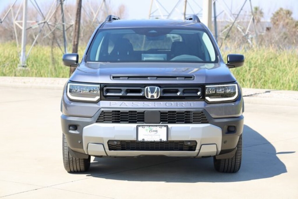 Modern Steel Metallic 2026 Honda Passport RTL AWD 10-Speed Automatic 3.5L V6 DOHC 24V 4-Wheel Disc Brakes, 9 Speakers, ABS brakes, Adaptive Cruise Control: Adaptive Cruise Control (ACC) with Low-Speed Follow, Air Conditioning, Alloy wheels, Apple CarPlay/Android Auto, Auto High-beam Headlights, Automatic temperature control, Blind Spot Information (BSI) System warning, Brake assist, Compass, Delay-off headlights, Electronic Stability Control, Emergency communication system: HondaLink, Exterior Parking Camera Rear, Four wheel independent suspension, Front anti-roll bar, Front Bucket Seats, Front Center Armrest, Front dual zone A/C, Fully automatic headlights, Heated door mirrors, Heated Front Bucket Seats, Heated front seats, HVAC memory, Illuminated entry, Lane departure: Lane Keeping Assist System (LKAS) active, Leather and Cloth Seat Trim, Leather steering wheel, Low tire pressure warning, Memory seat, Navigation system: Google Maps, Outside temperature display, Panic alarm, Power door mirrors, Power driver seat, Power Liftgate, Power passenger seat, Power steering, Power windows, Radio data system, Radio: Audio System with 9 Speakers, Rear air conditioning, Rear anti-roll bar, Rear window defroster, Rear window wiper, Remote keyless entry, Security system, Speed control, Speed-sensing steering, Split folding rear seat, Spoiler, Steering wheel mounted audio controls, Tachometer, Telescoping steering wheel, Tilt steering wheel, Traction control, Trip computer, Variably intermittent wipers. Price includes: $1000 - Loyalty/Conquest. Exp. 04/30/2026