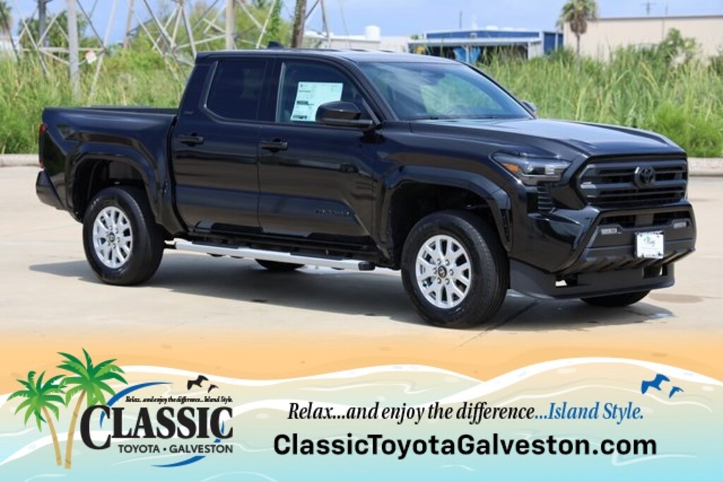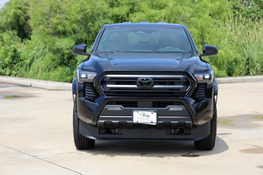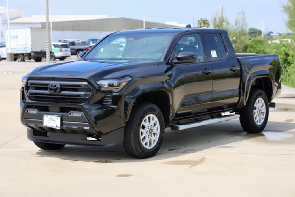 Black 2025 Toyota Tacoma SR5 4WD 8-Speed Automatic 2.4L 4-Cylinder Tacoma SR5, 4D Double Cab, 2.4L 4-Cylinder, 8-Speed Automatic, 4WD, Black, Black Fabric Artificial Leather, ABS brakes, Active Cruise Control, Alloy wheels, Electronic Stability Control, Heated door mirrors, Illuminated entry, Low tire pressure warning, Remote keyless entry, Traction control.