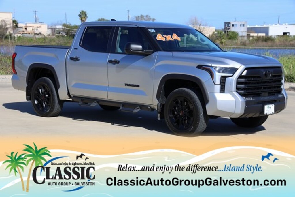 The Tundra's base trim starts you off withHeated exterior mirrors, A Sheet-molded compound composite bed, Remote locking and unlocking easy lower-and-lift tailgate, Hands-free entry and push-button engine start, a Power-opening rear window, an 8-inch touchscreen infotainment system, Wireless Android Auto and Apple CarPlay smartphone integration, available Satellite radio, Adaptive cruise control and Forward collision warning with automatic braking.